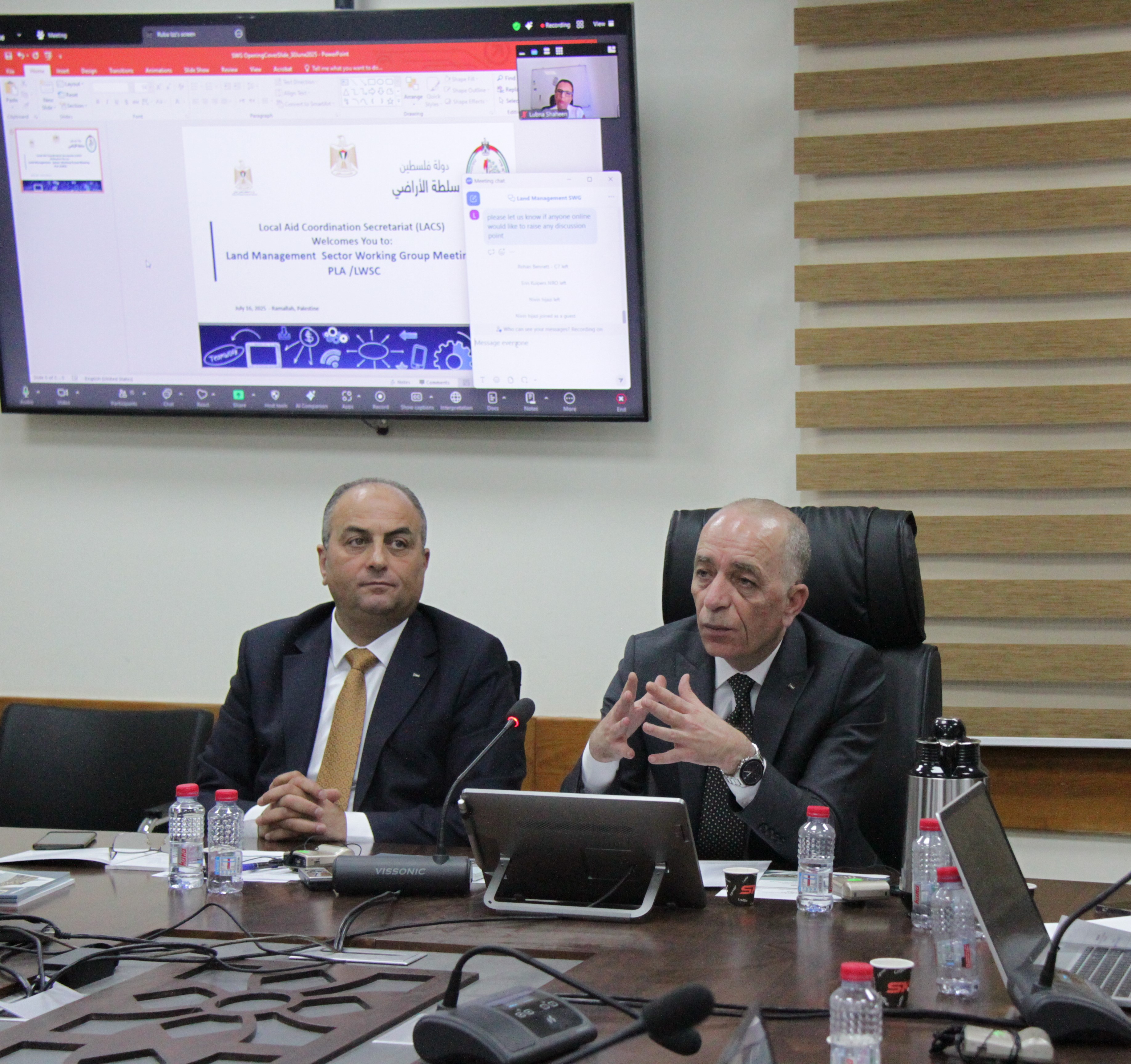 رام الله 16-07-2025 – عبرتنسيق من  مكتب سكرتاريا تنسيق المساعدات التابع لوزارة التخطيط والتعاون الدولي، تم   اليوم عقد اجتماع موسّع لمجموعة إدارة قطاع الأراضي في فلسطين، بحضور رئيس سلطة الأراضي المستشار علاء التميمي، والقائم بأعمال رئيس هيئة تسوية الأراضي والمياه الأستاذ سامر عودي، و السيد ديديه ساغاشيا رئيس فريق عمل البنك الدولي، حيث يشغل البنك الدولي نائب رئيس محموعة قطاع الاراضي ، والسيدة لبنى شاهين ممثلة برنامج الموئل التابع للأمم المتحدة، إلى جانب فريق قطاع الأراضي وكافة الشركاء المحليين والدوليين.
